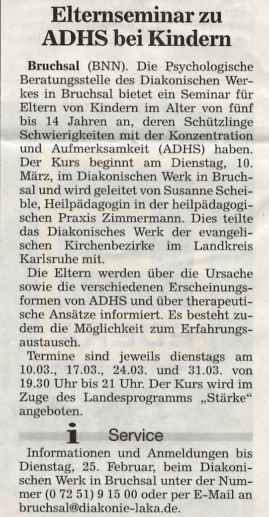 ADHS Elternseminar im Diakonischen Werk in Bruchsal, durchgeführt von unserer Praxisleitung Susanne Scheible!