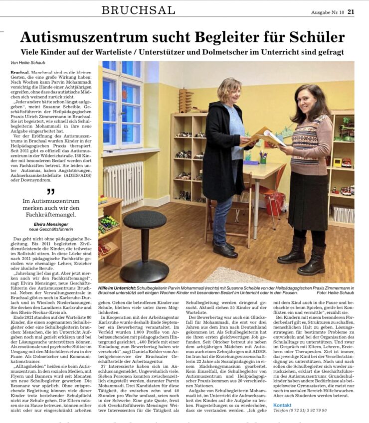 Neujahrsempfang der Schulbegleiter*innen der Heilpädagogischen Praxis und des AutismusZentrum Bruchsal im Restaurant Abseits in Ubstadt-Weiher. Tolle Gespräche und ein fröhliches Miteinander machten diesen Abend ganz besonders… Team Schulbegleitung Heilpädagogische Praxis: Susanne Scheible (Geschäftsführerin) und Beate Maier (Fachberatung Schulbegleitung) Zurück zu allen Stellenangeboten